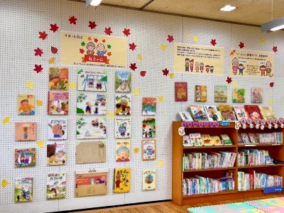 中身ではなく見た目で選んだので普段テーマ展示からは漏れてしまいがちな作品など幅広い内容の絵本や紙芝居が集まりました!室内の雰囲気もガラリ★