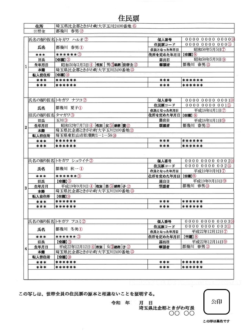 住民票見本(世帯全員)