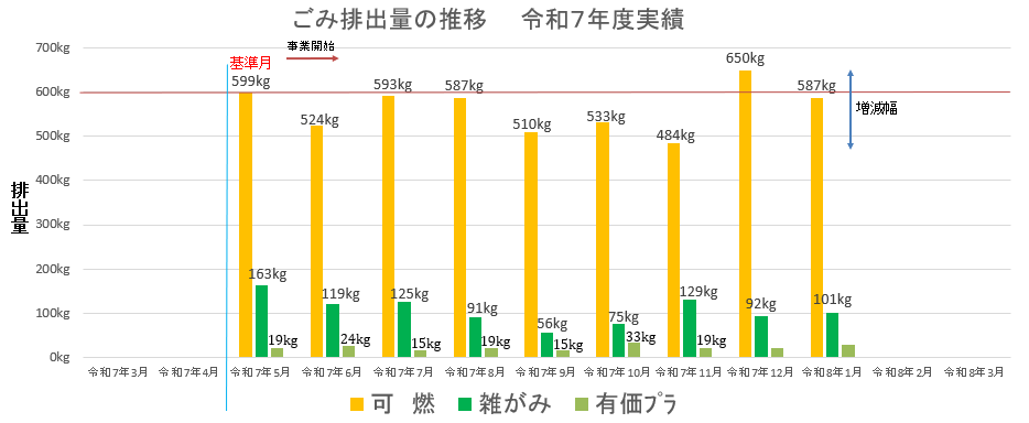 ※3月を基準に増減を見ることから「雑がみ」の数値が3月は「0」になっています。