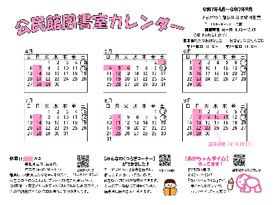 説明:図書館の管理・運営に関すること 開館時間 火・金・土・日/午前9時〜午後5時 水・木/午前9時〜午後6時 休 館 日 毎週月曜・祝日・1月2日~4日、12月28日~12月31日