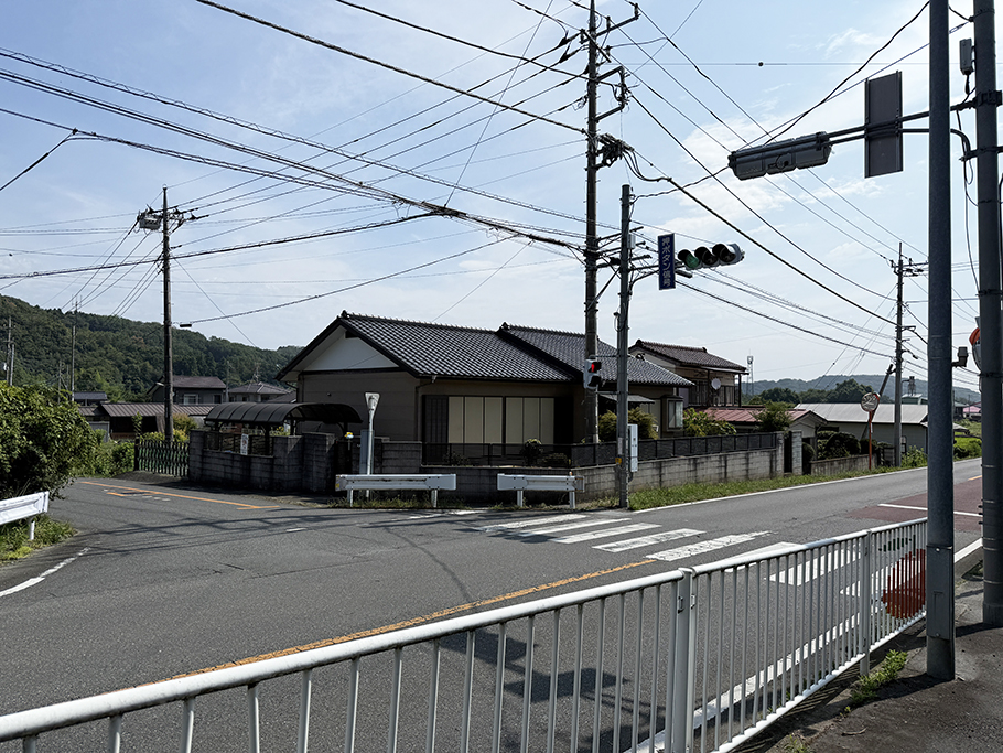 5分ほど歩くと手押し信号が見えてきます。こちらを渡って四季彩館方面に向かいます。(コース図①)