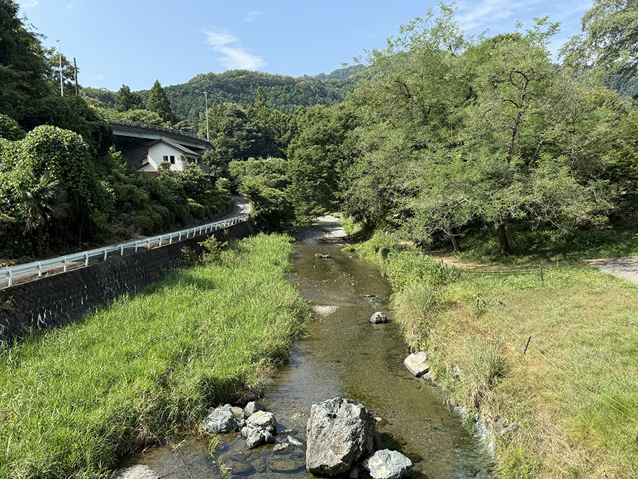 三波渓谷は木々に囲まれていてとても涼しく、流れも緩やかなため川遊びには最高です。(コース図③)