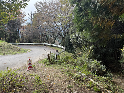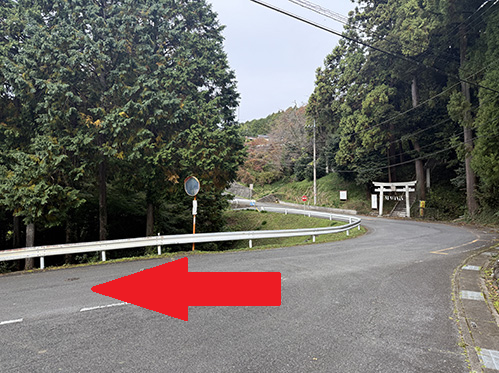 八幡神社脇の道を進むと、T字路にぶつかるのでそこを右に曲がって三波渓谷駐車場に向かいます。