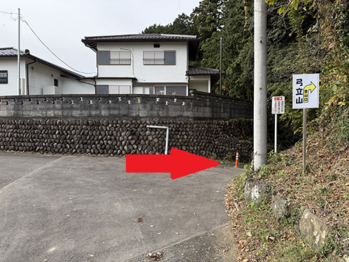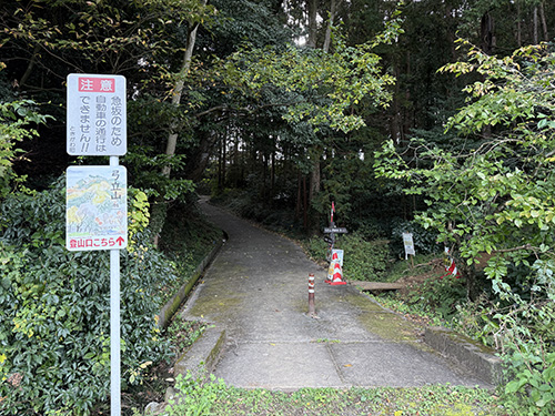 花壇から歩いてすぐ、右手に弓立山登山口があります。こちらから登山道を歩きます。