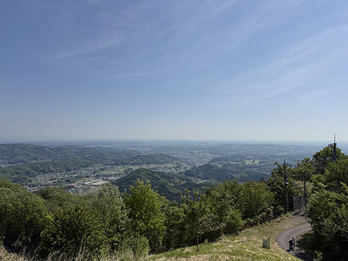 展望デッキからの景色です。標高427mの低山ながら関東平野を一望することができ、天気の良い日は東京スカイツリーを見ることができます。