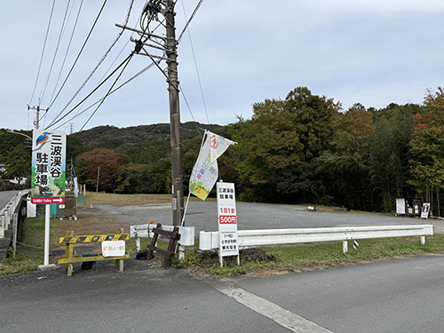 三波渓谷駐車場からスタートです。こちらの駐車場は環境整備協力金として500円かかります。(繁忙期間中は料金の変更あり)