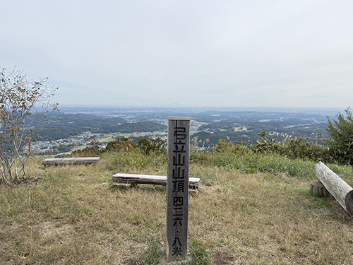 「弓立山周遊コース」は、三波渓谷駐車場を出発し、弓立山山頂、大附地区、桃木地区を通って三波渓谷駐車場に戻ってくる約8.8km、2時間50分のコースです。弓立山は標高が426.8mと低山ですが、景色を一望することができます。天気の良い日は東京スカイツリーまで見ることができます。(撮影日:2025年11月5日)