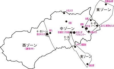 イーグルバス(株)ときがわ町路線バスゾーン図(略図)
